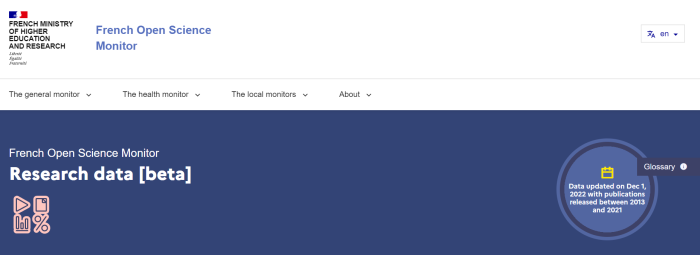 Results show in particular that 22% of French publications published in 2021 mention the sharing of their data, and that 20% of the French publications published in 2021 mention the sharing of their code or software.