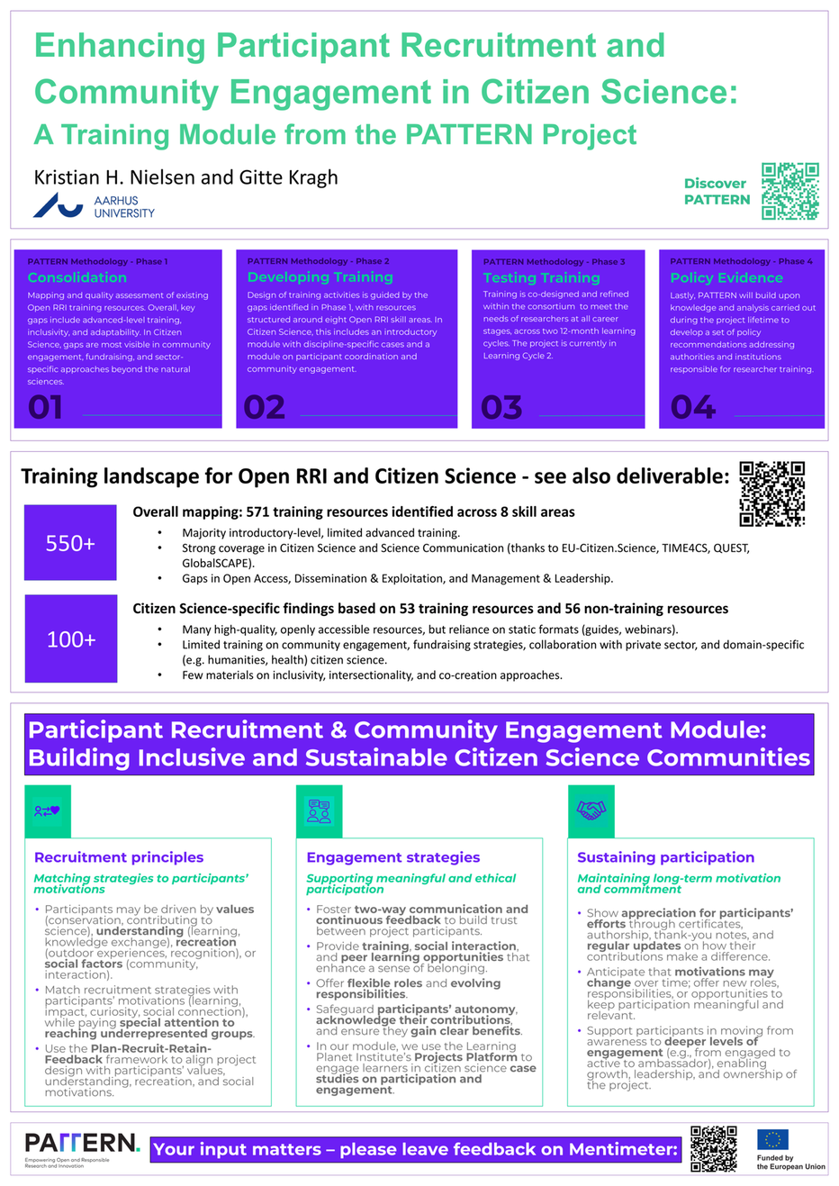 Citizen science empowers public participation and trust in research, but successful projects depend on strategic recruitment and sustained community engagement that again depend on available training of Open Science skills. Developed within the EU-funded PATTERN project (Piloting Open and Responsible Activities and Trainings Towards the Enhancement of Researchers Networks), our training module addresses these challenges. PATTERN promotes Open and Responsible Research and Innovation (OpenRRI) through eight training themes, each enhancing transferable skills critical for researchers' professional growth, as outlined in the Salzburg II Recommendations by the European Universities Association.
